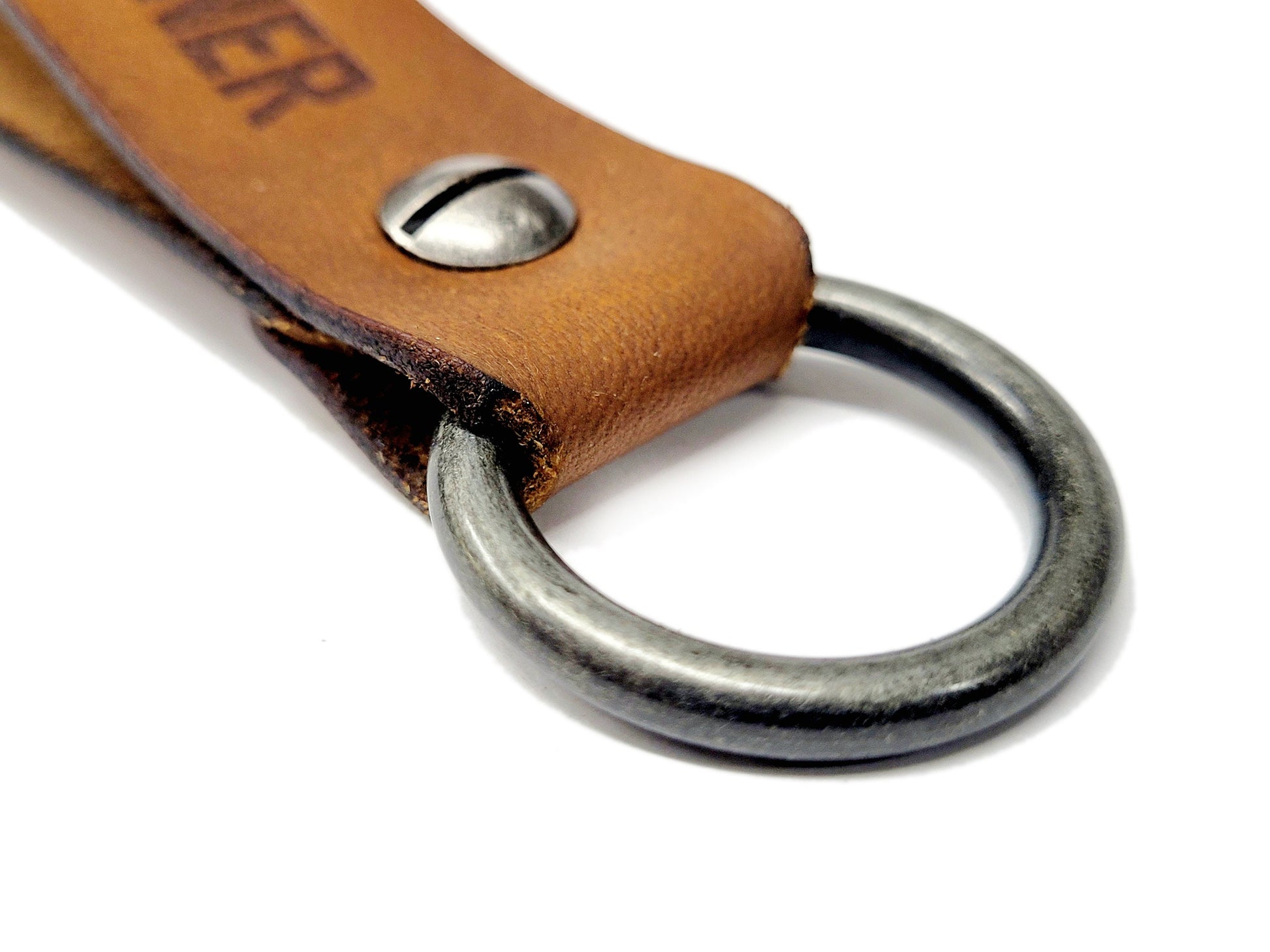 Oklahoma Sooners Boomer Sooner Leather Keychain | Handmade | Veg Tan Leather | Antique Nickel O Ring